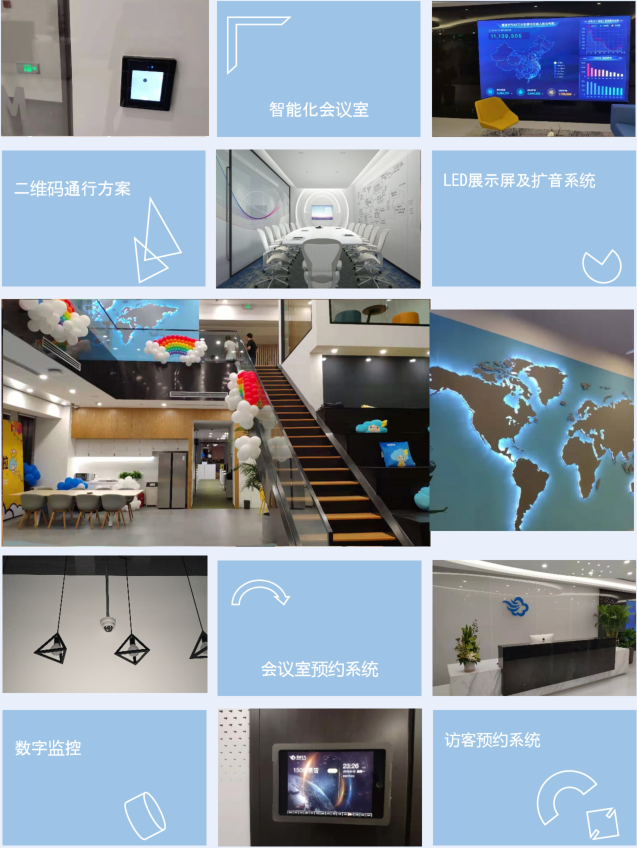项目内容:机房UPS 综合布线 数字监控 无线AP 拼接屏系统 扩音系统 二维码门禁 投影系统 会议室预约 访客预约等